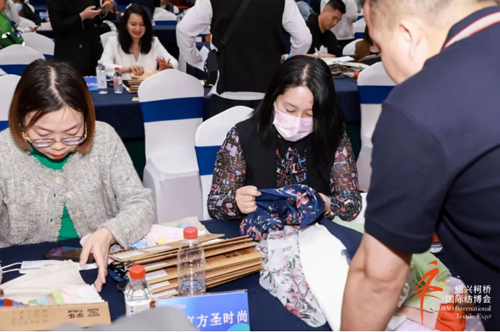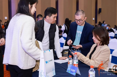 “本次對接會我們主要帶來了竹纖維、天蓮、太極石、冰氨、太舒、蘆薈等天然功能性產品,包括冰涼、免燙、三防類產品。許多服裝企業都對我們的創新型面料非常感興趣,添加了聯系方式,后續可能會進行調樣開發。這樣需求精準對接活動形式非常好,通過主辦方精準匹配更好地讓上下游無縫對接,希望以后多舉辦類似活動。”紹興柯橋利泰襯衫布有限公司相關負責人陳慈麗說道。