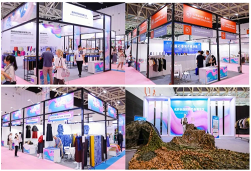 本次展會共500家展商參展,設新材料、新織造、新設備、新面料四大特色展區,有超10萬款科技纖維、創新面料、紡機設備在展會發布。魏橋紡織、昆山東利、興發化纖、吉林化纖、通用新材料、德州恒豐、佳人新材料、浙江興發、紹興國周、鐠美科等知名紡織龍頭企業參展。紹興新昌紡機產業展團、湖州長興織造產業展團、諸暨繡花機械產業展團、上虞染化料助劑產業展團等區域展團亮相。本屆展會更是引眾多RCEP國家和地區的展商組團奔赴而來,在國際展區,韓國ditto時尚聯盟、緬甸中國商會、莫斯科中小企業工商會等國際展團人氣旺盛。