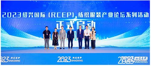 由中國紡織品進出口商會主辦的2023紹興國際(RCEP)紡織服裝產業論壇系列活動與展會同期同館開幕。論壇以“RCEP新機遇-紡織產業新格局”為主題,就國內紡織產業結構與RCEP國際紡織服裝產業的發展趨勢進行研討與產業對接。中國紡織品進出口商會副會長王宇、韓國時尚服裝人工智能研究所院長金蕙京、緬甸中國紡織服裝協會會長施坤等嘉賓為論壇開幕致辭。