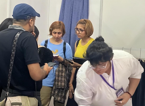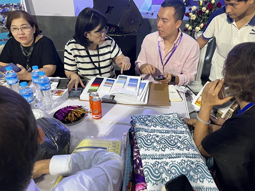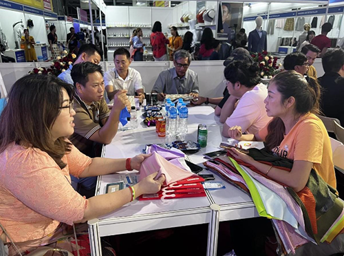 浙江乾道紡織品有限公司是第一次參加緬甸展會,主營針織類面料。在緬甸以前一直有合作單位,借著本次展會拜訪了緬甸本地合作單位,并與他一同參加了展會。展會期間,2家緬甸本地服裝加工企業現場下單20多萬美金的貨品。企業負責人王總表示,現場還有20多家意向客戶正在洽談,本次參展預計成交金額會超過80萬美金。王總對本次緬甸參展之行非常滿意,展會結算回國后將要盡快生產貨物。