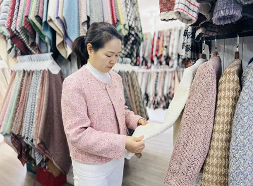 ![]() 位于輕紡城市場的藝鑫毛紡,深耕粗毛紡面料領(lǐng)域10余年,不斷在原料、風格以及后整理中的創(chuàng)新突破,做原創(chuàng)粗毛紡面料,生產(chǎn)差異化產(chǎn)品。走進藝鑫毛紡門店,一件件小香風外套整齊地陳列著,大多是“美拉德”色系,以棕色、大地色、卡其色、焦糖色和米黃色為主。據(jù)總經(jīng)理吳海霞介紹,今年“美拉德”色系的運用賦予了粗毛紡新的生命,藝鑫毛紡開發(fā)的300款新產(chǎn)品中出現(xiàn)多個爆款,直接帶動柯橋整個毛紡市場的跟風模仿和火爆銷售。