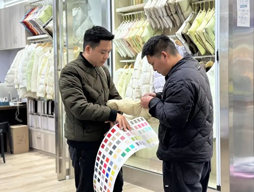 作為不可或缺的保暖利器,入冬以來,羽絨服成為消費者重點關(guān)注的保暖服飾,羽絨服面料的銷量迎來大幅增長。在中國輕紡城市場內(nèi),記者看到主營羽絨服面料的門店,客戶絡繹不絕,有不少正在選購中。
