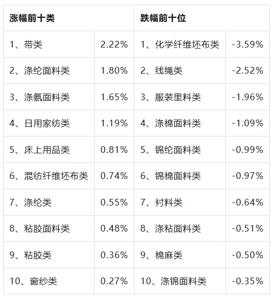 據監測,本期服裝面料類價格指數收報于116.69點,環比上漲0.41%,較年初上漲0.21%,同比下跌0.04%。其中:滌綸面料、滌氨面料、粘膠面料、粘毛面料成交價量不等量上漲,價格指數環比上漲。