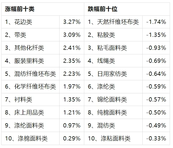 三、服裝面料環(huán)比回升,價(jià)格指數(shù)環(huán)比上漲