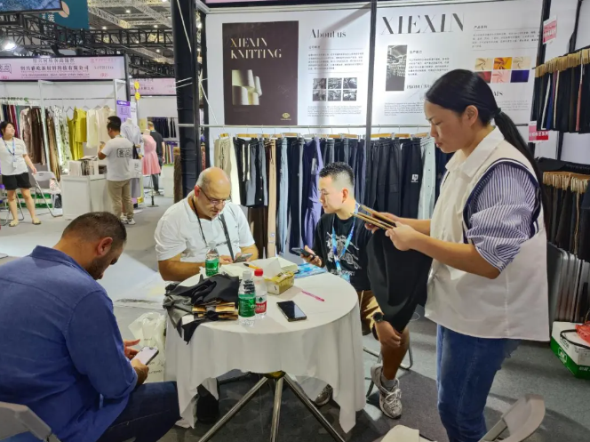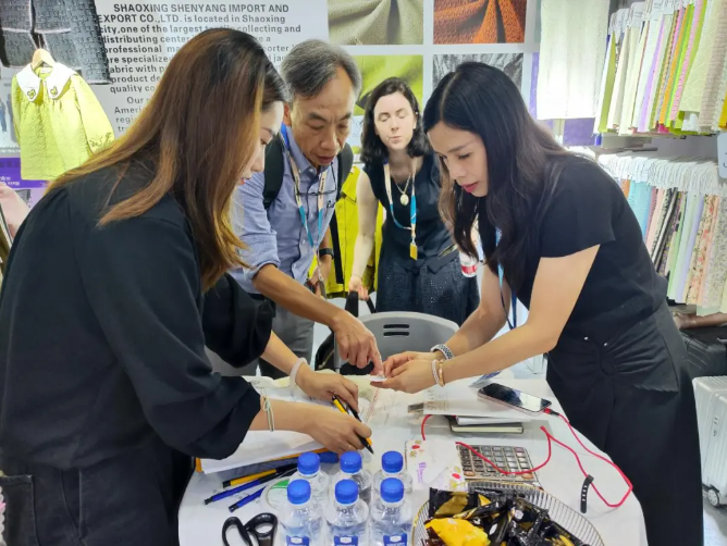 展會期間,前來參觀、咨詢、洽談的觀眾絡繹不絕。現場交流氛圍熱烈,組團參展企業紛紛表示,在展會期間與多家客戶達成初步合作意向,收到大量剪樣需求,更有現場直接達成訂單的情況。