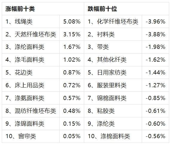 三、服裝面料環(huán)比回升,價(jià)格指數(shù)環(huán)比上漲