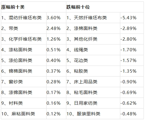 三、服裝面料震蕩回縮,價格指數環比下跌