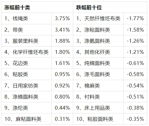 三、服裝面料環(huán)比回縮,價(jià)格指數(shù)環(huán)比下跌
