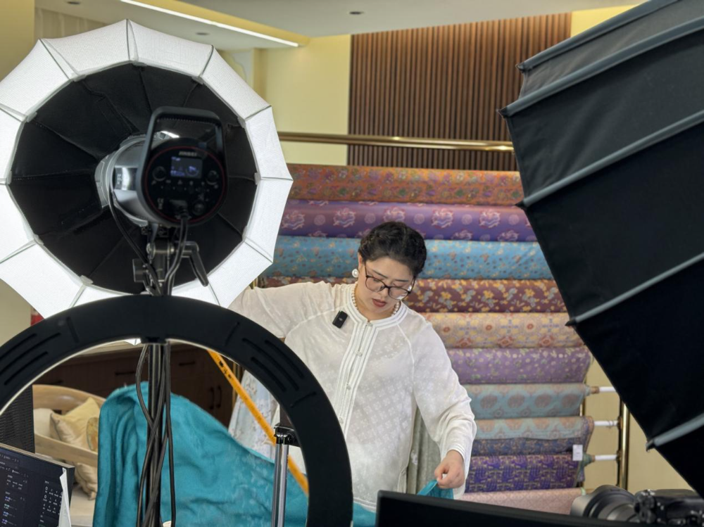 ![]() “作為一家主營窗簾窗紗的企業,公司在抖音、天貓、拼多多等主流電商平臺都開設了直播賬號。早在2022年8月服裝市場電商直播基地剛開始試運營的時候,我們就成為了首批入駐企業。入駐之后,基地運營方不僅定期組織專業的直播技能培訓,涵蓋平臺規則解讀、話術技巧、流量運營等實用內容,還積極對接高校資源,為團隊輸送了不少電商專業的實習生和應屆畢業生,有效緩解了快速發展中面臨的人才需求。得益于這里聚合的資源優勢和良好的發展環境,整個團隊的運營能力得到了扎實提升,整體GMV也得到了提高。”——紹興有礦文化傳媒有限公司總經理 龍偉