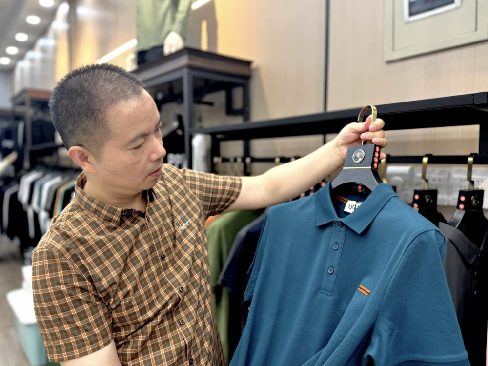 ![]() “我們自1996年進入服裝行業以來,始終專注于商務風、休閑風男裝領域,于八年前由華能服裝市場遷至現址。入駐初期,市場基礎設施尚不完善,但市場管理方持續投入,不斷優化硬件設施與服務細節,包括加強電梯安全管理、改善公共區域環境,為廣大經營戶創造了更加穩定和便利的營商環境。如今,整個市場配備中央空調系統,室內購物環境通透舒適,顯著提升了顧客的購物體驗。同時,市場還實行兩小時免費停車政策,極大方便了顧客采購,這些切實舉措不僅幫助我們留住了大量老客戶,也為承接新客戶提供了更多支持和保障。”——水龍男裝創始人 朱水龍