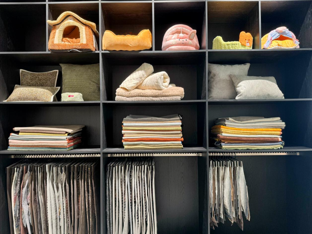 隨著養寵觀念的升級,人們不僅注重寵物的基礎生活需求,更愿意為寵物消費賦予更多審美與設計價值。位于中國輕紡城北市場的哲麥斯紡織以往以汽車座墊面料見長,如今正以其色彩鮮明與質感立體的面料,吸引著越來越多有追求的寵物用品設計師。