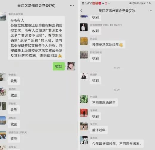 吳江溫州商會黨委帶頭響應政府號召,及時召開動員會并在微信群下發通知,按照各級疫情防控工作要求安排部署,積極引導,動員外省黨員就地過年。黨員們積極響應,紛紛表示要就地過年。 靶向服務 暖心關愛不缺位 盛虹控股集團有限公司黨委