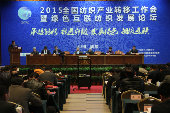 目前,中國經濟進入新常態(tài)時期,從高速增長轉為中高速增長,經濟結構不斷優(yōu)化升級,經濟從要素驅動、投資驅動轉向創(chuàng)新驅動。2015年紡織產業(yè)轉移結構調整已進入關鍵時期,這給產業(yè)轉移提出了新的課題,也帶來諸多挑戰(zhàn)。為進一步在結構調整中總結2015年紡織產業(yè)轉移的工作,交流園區(qū)工作經驗。 1月8日,2015年全國紡織產業(yè)轉移工作會暨綠色互聯紡織發(fā)展論壇在成都召開。本次活動主題為:“轉移升級,綠色互聯。”由中國紡織工業(yè)聯合會主辦,中國紡織工業(yè)聯合會紡織產業(yè)轉移工作辦公室、西南紡織服裝職業(yè)教育聯盟、四川成都紡織高等專科學校承辦。中國紡織工業(yè)聯合會副會長夏令敏、中國紡織工業(yè)聯合會副秘書長、中國紡織工業(yè)企業(yè)管理協會執(zhí)行副會長楊峻、中國工程院院士姚穆等重要等領導以及來自全國各地等產業(yè)園區(qū)代表、企業(yè)代表共計200余人出席會議。