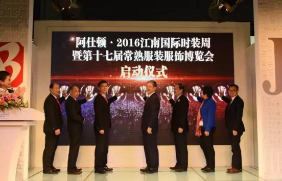 3月16日下午,“阿仕頓·2016江南國際時裝周暨第十七屆常熟服裝服飾博覽會新聞發(fā)布會”在2016中國國際服裝服飾博覽會(簡稱CHIC2016)期間正式召開。 5月聚焦江南探討時尚 中國紡織工業(yè)聯合會副會長、流通分會會長夏令敏,中國服裝協會顧問蔣衡杰,中國紡織工業(yè)聯合會流通分會副會長、《紡織服裝周刊》雜志社社長錢晉,中國流行色協會執(zhí)行副會長朱莎,中國紡織工業(yè)聯合會流通分會副會長兼秘書長張海燕與江蘇阿仕頓服飾有限公司董事長龔政一同出席剪彩。發(fā)布會上,常熟市委常委、常熟市人民政府常務副市長沈曉東代表常熟市委、市政府進行了致辭。