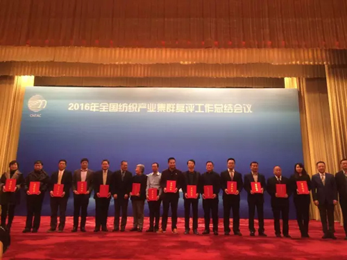 12月20日,中國紡織工業聯合會在北京人民大會堂召開2016年全國紡織產業集群復評工作總結會議。會議對第三次紡織產業集群試點復評工作進行總結,表彰三年來在紡織產業集群建設工作中做出突出表現的單位。 大朗成功通過“中國羊毛衫名鎮”的第三次復評,大朗鎮毛織行業管理辦公室榮獲“集群地區紡織產業發展服務優秀獎‘2014-2016’”、東莞市毛紡織行業協會被評為“紡織產業集群地區優秀協會‘2014-2016’”。