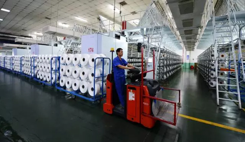現場參觀 當天,記者團走進盛虹集團假捻車間,對車間的產品和先進的生產設備產生了濃厚的興趣,他們駐足觀看了車間現場的智能化運作流程,并與陪同的工作人員就設備智能化升級與產品的工藝性能等方面進行了深入交流和探討。