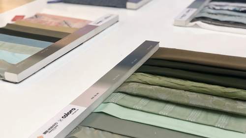 在濮院時(shí)尚中心中庭,簡(jiǎn)約設(shè)計(jì)的純白展區(qū)與時(shí)尚中心巧妙結(jié)合,渾然天成。400平米的展示面積中,展出了超過(guò)千款的針織、梭織面料。主辦方團(tuán)隊(duì)對(duì)面料進(jìn)行色彩梳理,通過(guò)COLORO?流行色彩引導(dǎo)展示,既能在視覺上吸引觀眾,又能于無(wú)形間提升專業(yè)觀眾對(duì)色彩的敏感度。兼顧時(shí)尚與功能性的同時(shí),更結(jié)合濮院當(dāng)?shù)禺a(chǎn)業(yè)特點(diǎn)特別開發(fā)了組織結(jié)構(gòu)豐富、花型變化多樣的針織面料,展示產(chǎn)品代表了國(guó)內(nèi)外領(lǐng)先的紡織產(chǎn)品開發(fā)方向,符合行業(yè)創(chuàng)新驅(qū)動(dòng)發(fā)展趨勢(shì)。