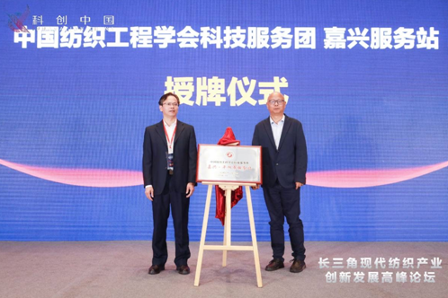 論壇上還舉行了“中國紡織工程學會科技服務團嘉興服務站”授牌儀式,服務站落地將進一步促進科技服務團服務“科創中國”試點城市項目實施,推動嘉興現代紡織產業高質量發展。