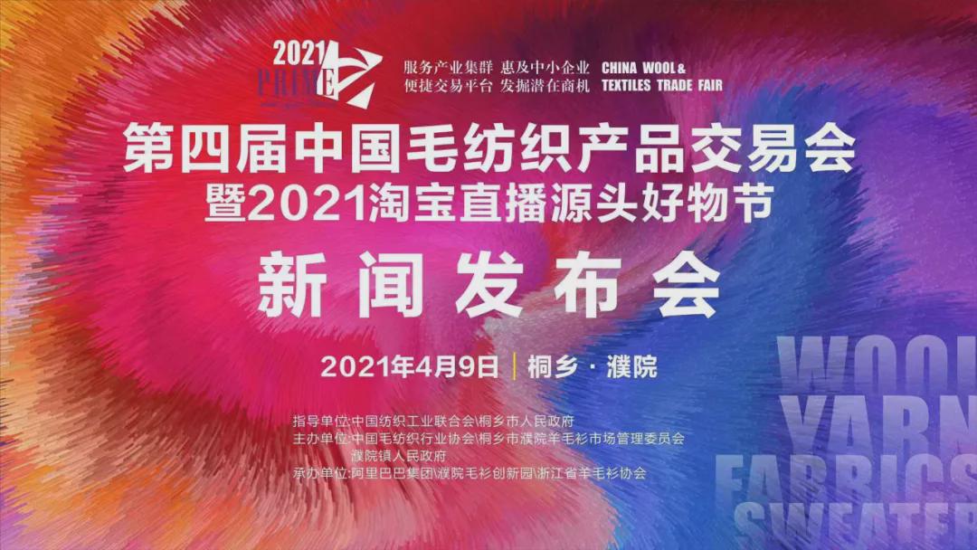 由中國紡織工業聯合會、桐鄉市人民政府指導;中國毛紡織行業協會、桐鄉市濮院羊毛衫市場管理委員會、濮院鎮人民政府聯合主辦;阿里巴巴集團、濮院毛衫創新園和浙江省羊毛衫協會聯合承辦的2021第四屆中國毛紡織產品交易會(PRIME 2021)將于2021年4月18-19日在浙江省桐鄉市濮院鎮舉辦。