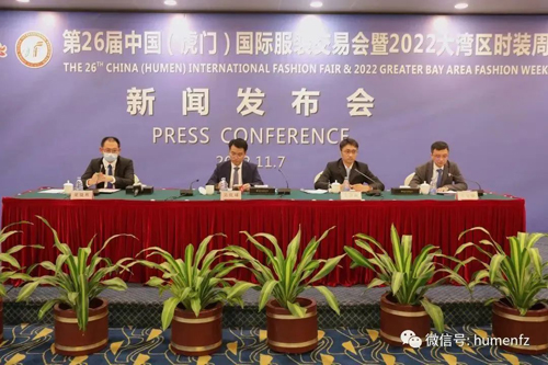 11月7日下午,第26屆中國(虎門)國際服裝交易會暨2022大灣區時裝周(簡稱“服交會”)新聞發布會在虎門龍泉國際大酒店多國語言廳舉行。
