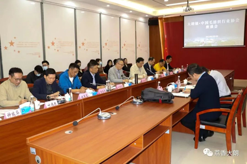 2月2日下午,大朗鎮?中國毛紡織行業協會座談會在大朗毛織管委會召開,鎮黨委書記郭懷晉,副鎮長林源泉以及大朗毛織管委會、毛織五大行業協會負責人與中國毛紡織行業協會會長劉家強,副會長劉焱一行進行座談,雙方圍繞毛織產業發展規劃、毛織產業集群升級等方面進行深度交流。
