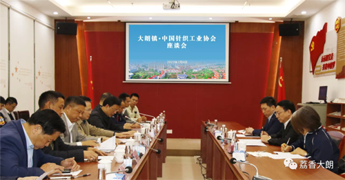 2月6日下午,大朗鎮·中國針織工業協會座談會在大朗毛織管委會召開,鎮黨委副書記、鎮長鄧柏松,副鎮長林源泉以及大朗毛織管委會、東莞市行業協會負責人與中國針織工業協會會長林云峰,中國針織工業協會副會長兼秘書長瞿靜一行進行座談,雙方圍繞大朗毛織行業現狀及2023年重點工作等方面進行深度交流。