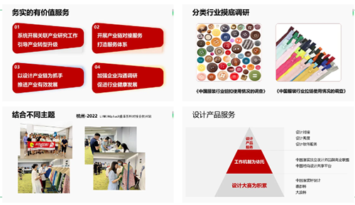 系統開展關聯產業研究工作,引導產業轉型升級。2022年和2023年,分別對鈕扣行業和拉鏈行業進行調查摸底,完成了《中國服裝行業鈕扣使用情況的調查》與《中國服裝行業拉鏈使用情況調查》。開展產業鏈對接服務,打造服務體系。以LINKINGplus產業鏈協同創新平臺為落地載體,整合協會內外資源,在產業集群與各地品牌等進行對接,加強交流與市場合作。以設計產業鏈為抓手,推進產業有效發展。依托中國服裝獨立設計師品牌商業聯盟、中國時尚設計共享平臺的工作機制,以設計對接、設計秀展、設計軟件服務等形式深入集群。加強企業溝通調研,促進行業健康發展。從2021年開始,專委會對相關的會員單位進行了摸底調查,收集企業需求,提升關聯企業與中國服裝協會的合作粘度。
