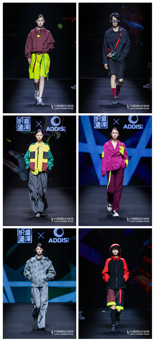 ![]() “交響”主題聚焦都市運動風尚,由雅士迪集團呈現,以功能性戶外面料融匯簡潔廓形,展現自在靈動的生活態度。輕盈尼龍與科技面料在拼接與印花中釋放張力,既兼顧舒適防護,又賦予造型鮮明的時尚氣質。