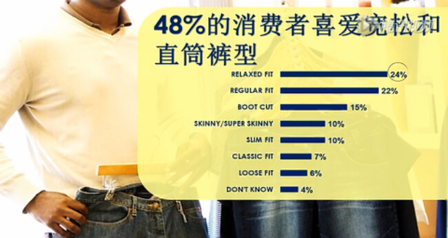 消費者鐘情經典純正棉質牛仔 將近一半的消費者喜歡經典的寬松和直筒褲型,90%的消費者更加青睞棉質牛仔,70%的消費者表示含棉量較高的牛仔舒、適耐穿而且更加時尚。