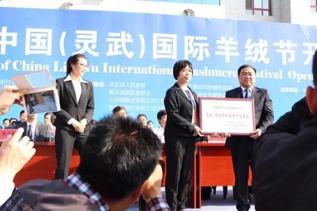 中國紡織工業聯合會品牌工作辦公室副主任、中國服裝設計師協會副主席蘇葆燕為靈武市頒授了中國紡織行業區域品牌試點“靈武?時尚羊絨品牌產業基地”牌匾。