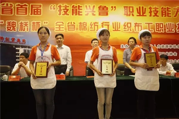 9月21日至9月25日,山東省首屆“技能興魯”職業技能大賽暨“魏橋杯”全省棉紡行業織布工職業技能競賽在魏橋創業集團舉行。魏橋創業集團共派出8名選手參賽,其中7名選手包攬大賽總成績前七名。 選手賽前加油鼓勁。 此次大賽由山東省人力資源和社會保障廳、山東省紡織工業協會、山東省輕工紡織工會委員會主辦,魏橋創業集團承辦。大賽依據相關國家職業標準分為理論知識考核和技能操作考核兩部分,以山東省地方標準《棉紡織噴氣織機值車工作法》為主,并參照國家和企業相關工作法內容,按照國家職業資格二級進行命題。 大賽第一名宋蕾蕾比賽中。 22日上午在鄒平縣黛溪山莊禮堂舉行了開幕式。開幕式結束后,參賽選手進行了操作理論知識考試。23日至24日,大賽實踐操作比賽在魏橋創業集團鄒魏一園一織舉行。比賽分為全項和單項兩部分,比賽品種為PC40S×PC32S 143×90 67"2/1左斜。參加比賽的選手共32人,她們來自全省9家紡織企業,都是噴織工序的操作尖兵。經過緊張激烈的比賽,魏橋創業集團的宋蕾蕾、田玉環、高欣欣、張梅玉、張梅鳳、趙雙、牛相雙包攬了大賽總成績第一名至第七名。 大賽前三名領獎。 25日上午,大賽舉行了閉幕式。省紡織工業協會會長夏志林致閉幕詞。大會向獲獎選手、優秀教練員、優秀裁判員、優秀組織獎、團體獎和特殊貢獻獎頒發了獎牌和證書。大賽總成績第一名、魏橋創業集團員工宋蕾蕾代表全體參賽人員宣讀了《致全省紡織行業廣大職工的倡議書》。山東省總工會、省紡織工業協會、省人力資源和社會保障廳,濱州市經信委、紡織工業協會以及鄒平縣相關領導出席了大賽開幕式和閉幕式。 |