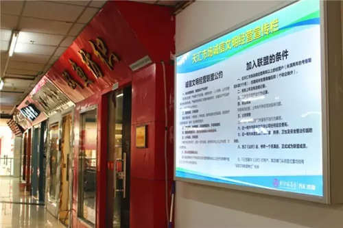 輝煌布藝是天匯市場(chǎng)內(nèi)一家開了十幾年的老門市部,負(fù)責(zé)人傅衛(wèi)鋼在接受記者采訪時(shí)表示:“一個(gè)好的專業(yè)市場(chǎng),不僅需要現(xiàn)代化的硬件設(shè)施,更需要經(jīng)營(yíng)者文明、誠(chéng)信經(jīng)營(yíng)。比如按時(shí)繳稅,積極解決客戶投訴,不抄襲他人花樣等,這些看起來微不足道的行為正是推動(dòng)市場(chǎng)向前發(fā)展的內(nèi)生力量。市場(chǎng)的發(fā)展需要我們經(jīng)營(yíng)戶的共同努力,而誠(chéng)信文明經(jīng)營(yíng)正是經(jīng)營(yíng)戶們最應(yīng)踐行的理念與行為。” 馬曉峰表示,為了更好地推動(dòng)聯(lián)盟的發(fā)展,市場(chǎng)管理處特意邀請(qǐng)廣告公司制作了誠(chéng)信文明經(jīng)營(yíng)手冊(cè),發(fā)放給聯(lián)盟的每一個(gè)成員單位。自考核實(shí)施以來,各成員單位的配合度都很高,誠(chéng)信文明經(jīng)營(yíng)的理念正逐漸深入人心。“如今市場(chǎng)環(huán)境變得更加整潔,市場(chǎng)安全有了更多保障,市場(chǎng)內(nèi)的各類糾紛明顯下降,市場(chǎng)發(fā)展更加和諧。經(jīng)過和聯(lián)盟理事商討,今年將進(jìn)一步擴(kuò)大聯(lián)盟成員的覆蓋面,邀請(qǐng)更多優(yōu)質(zhì)的經(jīng)營(yíng)戶參與其中,提升聯(lián)盟的影響力。” 聯(lián)盟成立力推自主管理 在天匯市場(chǎng)B區(qū)2樓,共有32家經(jīng)營(yíng)戶率先嘗鮮。“這些第一批加入‘誠(chéng)信聯(lián)盟’的經(jīng)營(yíng)戶都是從自主報(bào)名的經(jīng)營(yíng)戶中精挑細(xì)選出來的。”馬曉峰說。記者翻看了天匯市場(chǎng)誠(chéng)信文明經(jīng)營(yíng)手冊(cè)后發(fā)現(xiàn),經(jīng)營(yíng)戶想要加入聯(lián)盟,必須符合8項(xiàng)條件。而對(duì)這些條件的監(jiān)督與審核,則由市場(chǎng)管理處聯(lián)合工商、稅務(wù)、司法等相關(guān)部門共同完成。 在第一次聯(lián)盟大會(huì)上,市場(chǎng)管理處給所有加入聯(lián)盟的單位都授予了“誠(chéng)信文明經(jīng)營(yíng)戶”的牌匾,并在此次大會(huì)上選出了一家理事長(zhǎng)單位和兩家常務(wù)理事單位作為聯(lián)盟理事會(huì)成員,處理聯(lián)盟內(nèi)部事務(wù),解決各類糾紛。