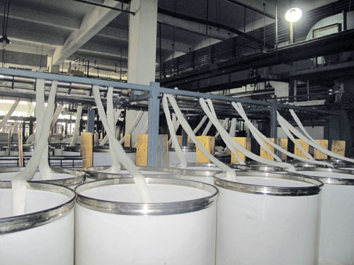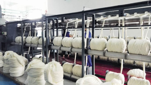 常熟市新光毛條處理有限公司生物酶連續(xù)式羊毛快速防縮關鍵技術生產線。 為加快推廣“生物酶連續(xù)式羊毛快速防縮關鍵技術及產業(yè)化”的應用,7月6日,中國毛紡織行業(yè)協(xié)會在江蘇常熟組織召開了“2016年毛條無氯處理成功交流研討會”。江蘇省常熟市副市長周靈群、中國毛紡織行業(yè)協(xié)會會長黃淑媛、天津市綠源天美科技有限公司總經理張偉民、常熟市新光毛條處理有限公司總經理瞿建德,以及來自行業(yè)相關機構和企業(yè)的代表參加了會議。 革命性突破體現(xiàn)在哪里? 目前,羊毛防縮處理工藝應用最廣泛的是氯化防縮法,該工藝具有成本低、防縮效果好的優(yōu)點,但處理過程所產生的有機鹵化物AOX(可吸收的有機鹵化物)會嚴重污染環(huán)境,國內外紛紛通過立法的方式來限制AOX的排放。而且其殘留氯難以除凈,不符合生態(tài)紡織品的加工要求。隨著科學技術的發(fā)展和人們環(huán)保意識的增強,傳統(tǒng)的氯化法防縮處理已經逐漸被新型環(huán)保的方法取代,追求更節(jié)能、低成本、質量好的防縮方法成為紡織領域研究的趨勢。 武漢紡織大學化工學院院長姚金波介紹,當前羊毛防縮無氯處理的技術有高錳酸鉀法、過氧化物法、臭氧氣體處理法、生物酶法、低溫等離子處理法、液氨法以及天然高聚物、納米材料整理法等。其中,生物酶法不僅生態(tài)環(huán)保,而且反應條件溫和,催化效率高,安全易操作,廢液易生物降解,最有可能替代氯化防縮工藝。 天津市綠源天美科技有限公司從2008年就開始研究生物酶連續(xù)式羊毛快速防縮關鍵技術。該技術的成功應用解決了長期困擾業(yè)界的毛條氯化處理引起的AOX排放等嚴重的環(huán)境問題,同時也解決了因氯泄露引起的車間生產環(huán)境污染問題。 在會議前一日,該技術還通過了由中國紡織工業(yè)聯(lián)合會組織召開的鑒定會。經質詢和討論,鑒定委員會一致認為該項目顯著提高了生物酶與羊毛纖維鱗片的反應效率,重點解決了連續(xù)加工過程中的均勻性、穩(wěn)定性等技術難題,建成了連續(xù)式加工生產線,首次實現(xiàn)了羊毛毛條生物酶連續(xù)式快速防縮加工產業(yè)化,實現(xiàn)了羊毛防縮的綠色加工。 會上,蘇州大學紡織與服裝工程學院院長陳國強宣讀了鑒定結果并提出,該技術達到國際先進水平,在羊毛毛條生物酶快速連續(xù)防縮處理技術方面達到國際領先水平,且該技術加工的羊毛纖維性能優(yōu)良、質量穩(wěn)定,工藝技術先進、成熟,具有廣闊的推廣和應用前景。