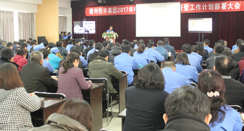 本次會議由德州恒豐集團副秘書長李穎穎主持,集團領導、各理事會成員、各公司中高層管理人員及后備人才共600余人分別通過現場和視頻參與此次大會。會議共有5項議程 。首先26家理事單位總經理分別進行了2017年度工作述職報告。之后集團理事長和總經理分別宣布集團及各公司2017年中高層管理人員聘任結果,隨后黨委書記和各執行理事長結合各自的工作分工進行了工作部署。