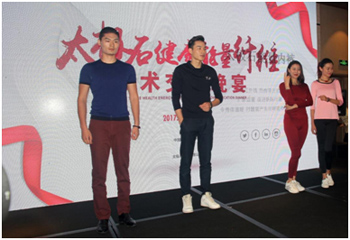 太極石富含鈦、鉀、鍺等多種微量金屬礦物元素,經(jīng)過納米技術(shù)制成礦石粉末,粉末與纖維混紡,具有遠(yuǎn)紅外、抗菌、防紫外線等服用性能,并可應(yīng)用于眾多紡織產(chǎn)品。接下來蔡建瑩和許金森分別做了題為太極石納米生物技術(shù)應(yīng)用、太極石纖維改善人體微循環(huán)的研究技術(shù)交流報(bào)告,讓人們對(duì)太極石纖維的特殊加工技術(shù)、功能效果以及如何與人體作用,從而改善人體的生理機(jī)能有了深入的了解。