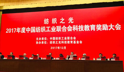 近日,中國紡織工業(yè)聯(lián)合會在北京人民大會堂召開了“紡織之光”2017年度中國紡織工業(yè)聯(lián)合會科技教育獎勵大會,表彰2017年度中國紡織工業(yè)聯(lián)合會科學(xué)技術(shù)、教育、技能人才、針織內(nèi)衣創(chuàng)新獎勵的獲獎代表,會議由紡織之光科技教育基金會協(xié)辦。