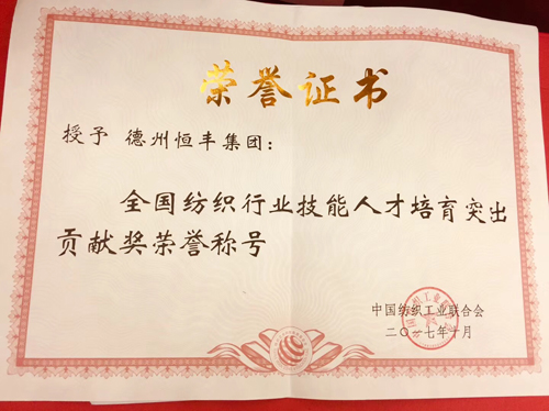 | 德州恒豐集團(tuán)榮獲“紡織之光”全國紡織行業(yè)技能人才培育突出貢獻(xiàn)獎 |