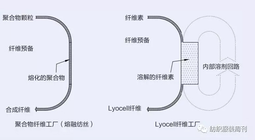 文:昂一工程技術(shù) ( 上海 ) 有限公司吳崢 在傳統(tǒng)的熔融紡絲工藝中,如尼龍、聚乙烯、聚丙烯或滌綸的工藝中,聚合物顆粒被熔融并通過(guò)紡絲頭不斷被擠出。纖維從紡絲頭擠出時(shí),冷空氣將同時(shí)冷卻纖維。在拉伸和上紡絲油劑后,即可生產(chǎn)出纖維,無(wú)需提前制備任何溶液。一般來(lái)說(shuō),加工1噸聚合物熔體將會(huì)產(chǎn)生1噸合成纖維產(chǎn)品。 Lyocell工藝是溶劑紡絲工藝,使用干噴濕法紡絲。這意味著基礎(chǔ)的產(chǎn)品纖維素在溶劑(NMMO)中溶解。制備的溶液以熔融紡絲工藝中同樣的方法被擠出。冷卻氣體(空氣)將紡絲溶液冷卻至可以在空氣隙中形成絲束的程度。與傳統(tǒng)熔融紡絲工藝對(duì)比,產(chǎn)生的絲束在經(jīng)過(guò)空氣隙后必須進(jìn)入紡絲浴,以濾去溶劑并接收(沉淀)纖維素以成纖維形狀。一般來(lái)說(shuō),在Lyocell工藝中生產(chǎn)1噸Lyocell纖維需要6~10噸的紡絲溶液。