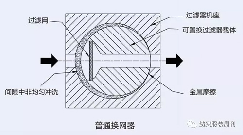三是以換網(wǎng)器清潔粘性流體。為在聚合物工業(yè)中實(shí)現(xiàn)可靠的生產(chǎn)工藝,在擠出前從紡絲溶液或熔體中去除雜質(zhì)是至關(guān)重要的。 傳統(tǒng)過(guò)濾裝置(換網(wǎng)器)主要包含一個(gè)機(jī)座本體,帶有雜質(zhì)流體的進(jìn)口和被過(guò)濾流體的出口,一個(gè)在機(jī)座內(nèi)可置換的過(guò)濾器載體,一個(gè)在過(guò)濾器載體內(nèi)的過(guò)濾器。如果過(guò)濾網(wǎng)被堵塞則必須被清潔或置換。因此機(jī)座中的過(guò)濾器載體必須以此方式被置換,譬如,關(guān)閉過(guò)濾器載體的進(jìn)口,含過(guò)濾器的過(guò)濾器載體送到能接受清洗的位置。之后,過(guò)濾器載體被再次置換到初始位置。