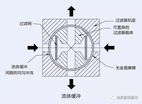 在過(guò)濾器載體和過(guò)濾器機(jī)座之間需要有間隙,使過(guò)濾器載體移動(dòng)不損傷載體和機(jī)座的滑動(dòng)表面。間隙被相當(dāng)于潤(rùn)滑劑的紡絲溶液或聚合物熔體沖洗。沖洗間隙會(huì)導(dǎo)致紡絲溶液的損失。此損失需盡量控制在最小程度,但必須保證載體和機(jī)座間的所有滑動(dòng)表面都能被潤(rùn)滑。為避免老化的紡絲溶液凝聚,對(duì)間隙的沖洗必須是均勻的。 由于過(guò)濾器進(jìn)口和出口的壓力差,普通的過(guò)濾裝置不可能達(dá)到均勻的沖洗。過(guò)濾器載體沿著機(jī)座出口壁被壓出,屬摩擦。 ONE-A的發(fā)明旨在為輸送和過(guò)濾紡絲溶液和熔體提供改進(jìn)的方法和裝置,以避免或使上述問(wèn)題和弊端最小化。 四大關(guān)鍵點(diǎn)保證紡絲溶液連續(xù)供應(yīng) 這兩項(xiàng)專(zhuān)利技術(shù)有四大關(guān)鍵點(diǎn): 一是熱交換器以管道部件形式設(shè)計(jì)。該系統(tǒng)允許一個(gè)沿管道系統(tǒng)的預(yù)先設(shè)定控制的橫截面溫度和(或)壓力分布,如通過(guò)流體的再分層的方式。 熱交換器以管道部件形式提供,沿管道系統(tǒng)有固定間距。根據(jù)保持管道系統(tǒng)里的預(yù)先設(shè)定的溫度和(或)壓力分布,來(lái)確定固定的間距。 在熱交換器內(nèi)可以進(jìn)行調(diào)節(jié)以使粘性流體在預(yù)先設(shè)定的溫度下在熱交換器內(nèi)進(jìn)行輸送,并且視需要,提供混合組件以保持在管道橫截面上預(yù)先設(shè)定的溫度和(或)壓力分布。