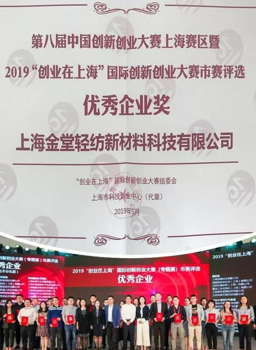 | 上海金堂輕紡榮獲“中國創(chuàng)新創(chuàng)業(yè)大賽”優(yōu)秀企業(yè)獎(jiǎng) |