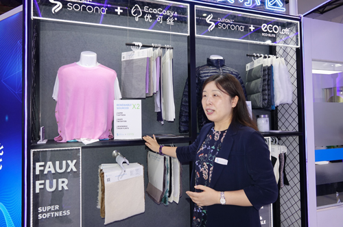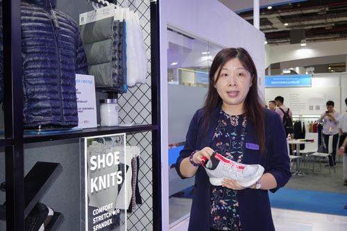 ![]() 翁經理還為記者介紹了展會上展出的一些全新的產品,也是他們此次的創新產品。“這是我們的一條新產品線,是以SORONA?為材料的人造毛皮,所以,我們根本沒使用真動物毛皮,也可以制作出柔軟親膚、外觀美麗的毛皮面料。另一條新產品線是用SORONA?和再生聚酯纖維制成的保暖材料,用于仿羽絨的填充,不僅保暖值高,還具有更強的可持續發展理念。”此外,杜邦公司也開始更多地涉足鞋類面料應用開發,這樣鞋面針織部分可以有更好的彈性回復性,讓消費者有更加舒適的運動體驗。同時,也和其他優秀的材料企業合作,如賽得利公司,用他們的環保型粘膠纖維優可絲?和SORONA結合,生產出柔軟親膚且更具功能性的高品質面料。