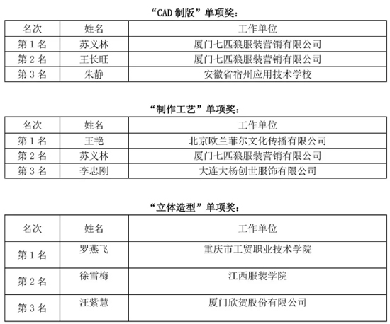 服裝制版師職業(yè)技能競賽獲獎名單