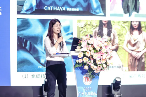 ![]() 中國紡織信息中心科技信息部項(xiàng)目總監(jiān)陳佳在會(huì)上介紹了在2021春夏中國紡織面料流行趨勢(shì)指引下開發(fā)的科技和功能產(chǎn)品以及最新技術(shù)進(jìn)展,包括能夠?qū)崿F(xiàn)輕量質(zhì)感、表面光澤、涼感舒適、單向?qū)瘛⒖咕共《尽⑹孢m保暖等風(fēng)格和功能的紡織技術(shù)和最新開發(fā)產(chǎn)品。