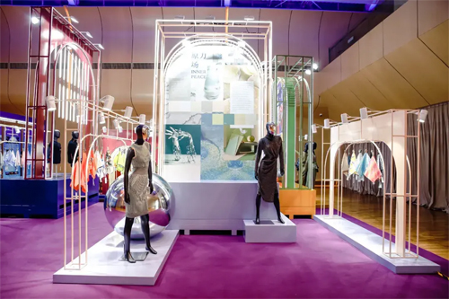 陳佳還介紹道,“2021春夏中國紡織面料流行趨勢(shì)——科技&功能產(chǎn)品”動(dòng)態(tài)秀演及靜態(tài)發(fā)布區(qū)立足本季流行趨勢(shì)主題的概念點(diǎn),系統(tǒng)化地呈現(xiàn)了最新的科技&功能性面料及“培育和推廣年度十大類紡織創(chuàng)新產(chǎn)品的優(yōu)秀獲選產(chǎn)品。例如探路者的“光致變色皮膚衣”、愛得智能的“單導(dǎo)聯(lián)智能心電服”、愛慕股份的“碳纖維柔性發(fā)熱衣”、智裳科技的“AI智慧瘦身衣”、匯美時(shí)尚的“非遺藍(lán)印花布系列連衣裙”、鼎盛絲綢的“纏枝蓮花防盜卡包”等,通過新材料、新技術(shù)的創(chuàng)新應(yīng)用賦予了產(chǎn)品科技和功能屬性。此外,現(xiàn)場(chǎng)還展示了眾緣紡織、勁峰紡織、全順集團(tuán)等中大商圈的優(yōu)秀企業(yè)、廣州國際輕紡城的優(yōu)秀入住商戶的功能面料和成衣。
