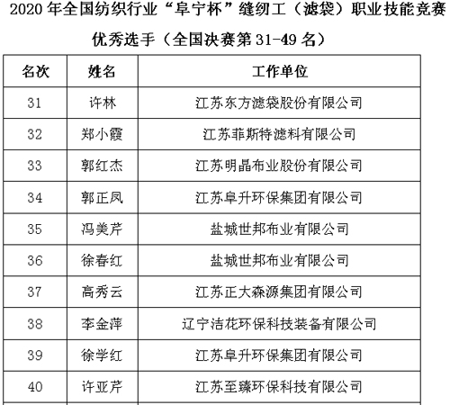 | 2020年 “阜寧杯”縫紉工(濾袋)職業技能競賽總決賽贏家出爐 |
