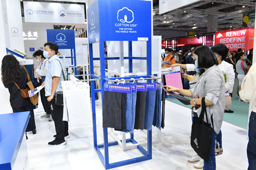 在COTTON USA?的展位上同時展示了美棉認證企業和品牌包括:江蘇春藍紡織(Chunlan Textiles), 康龍紡織(Cone Denim), 江門市大興針織(Daxing Knitters),興威紡織(H.W. Textiles), 宜興樂祺紡織集團(Lucky Textile), 青島捷瑞德紡織(Qingdao Jerid Textile)上海上怡貿易(SCHIESSER), 浙江盛泰服裝集團(Sunrise Textiles)的優質富含美國棉花的產品,同時使到訪者了解當前市場和消費者研究結果,以及與整個供應鏈中美國棉花買家和供應商相匹配的持續采購計劃。