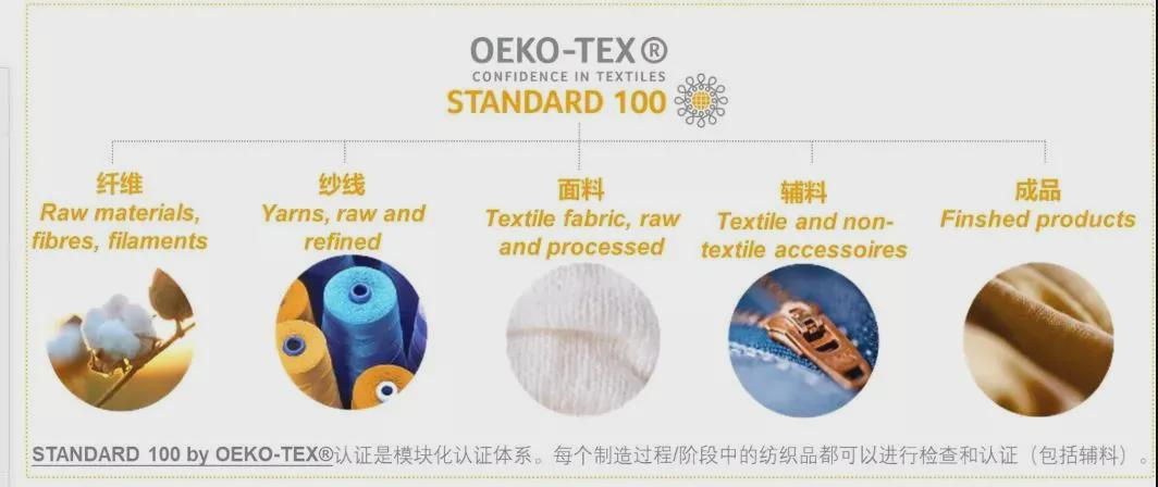 原則上,所有加工階段的紡織品,從紗線到面料、輔料及成品,都適用于STANDARD 100認證。每種不同的產品都必須根據其產品特性、加工工藝、所使用的染化料的不同,達到所對應檢測項目的限量值要求。 對于紡織成品來說,產品上所用到的所有面輔料,包括線、鈕扣、拉鏈、襯里,以及外部材料的印花和涂層也必須通過有害物質檢驗。所以,無論是嬰幼兒紡織品、服裝、家用紡織品還是裝飾材料,帶有STANDARD 100標簽的產品都是值得信賴的。