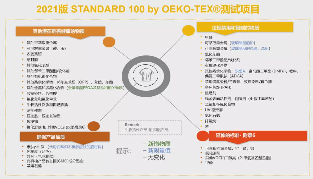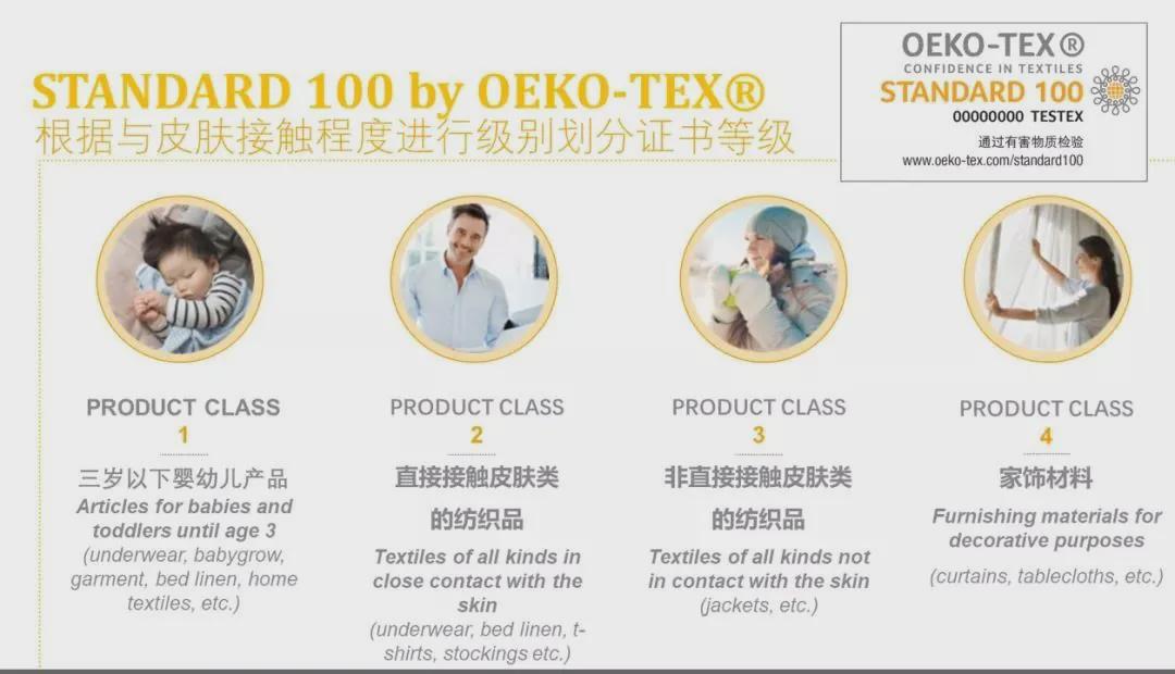 STANDRAD 100是全球最知名的檢驗有害物質的生態紡織品標簽之一,代表著消費者的信任和高度的產品安全性。所有通過有害化學物質檢驗的紡織品,從紗線到成品,均可懸掛STANDARD 100產品標簽。那么,該認證的含金量在哪?其具體內容及檢測指標是什么呢?這5個方面讓你快速了解STANDRAD 100認證。 · STANDARD 100代表什么?