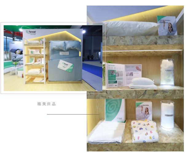 蘭精展位還展出了天絲?纖維廣泛應(yīng)用于家居系列內(nèi)的全品類應(yīng)用,包括床單、被套、毛巾、浴袍、地毯等產(chǎn)品。